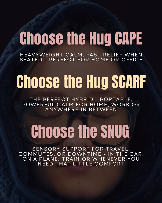 Fast and simple deep pressure that relaxes,. For use it in the day when stressed or anxious. Find better resilience to pressure. Discover your caretaker for your nervous system.— Grace - Head of Business Partnerships"I ABSOLUTELY LOVE, LOVE, LOVE MY SCARF - I highly recommend this, it is so calming and relaxing. I wear this while working and feel it does wonders for my shoulders. The quality is amazing."