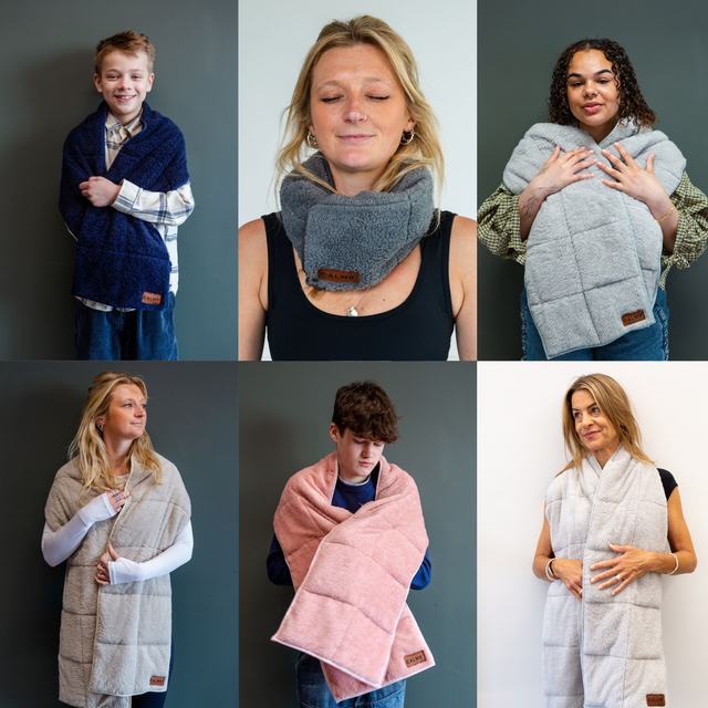 Fast and simple deep pressure that relaxes,. For use it in the day when stressed or anxious. Find better resilience to pressure. Discover your caretaker for your nervous system.— Grace - Head of Business Partnerships"I ABSOLUTELY LOVE, LOVE, LOVE MY SCARF - I highly recommend this, it is so calming and relaxing. I wear this while working and feel it does wonders for my shoulders. The quality is amazing."